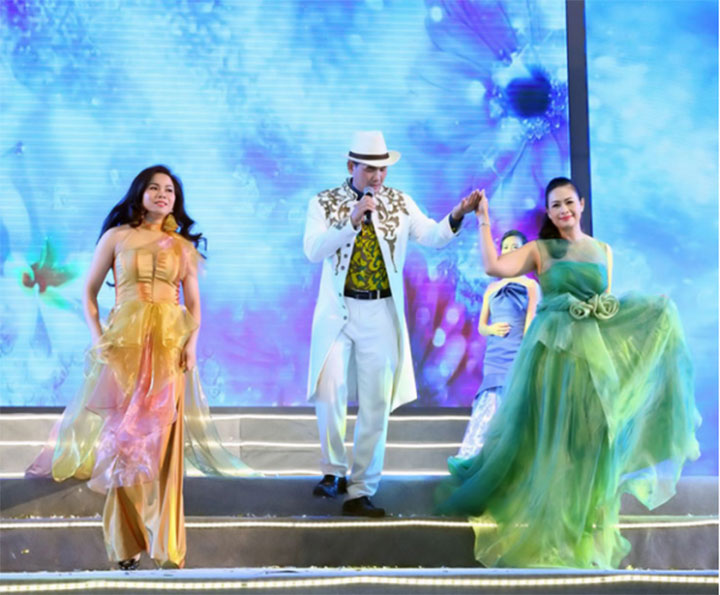 Doanh nhân Nguyễn Thị Hoàng Trang GĐ Công ty Giải trí SAO ĐÔNG Á - Ban VTM và Doanh nhân Đỗ Xuân Phương (áo trắng) GĐ Công ty TNHH DV- TM PHÁT ĐẠT - Trưởng ban VTM