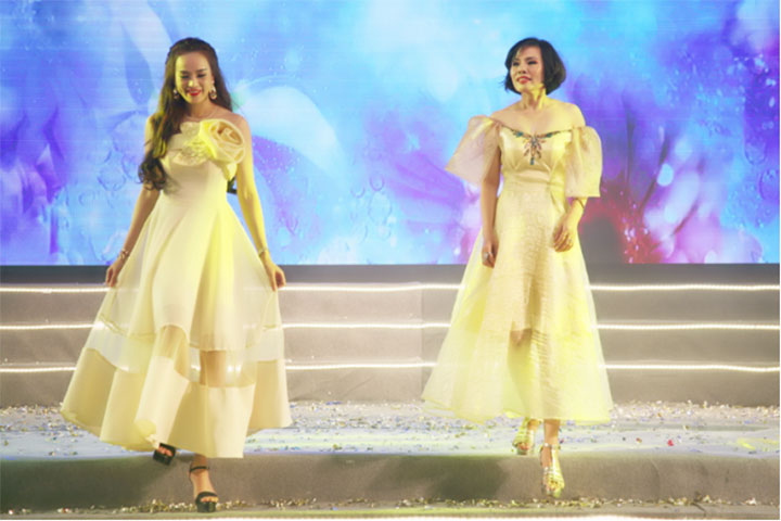 Doanh nhân Đỗ Thị Ái Phương - CÔNG TY TNHH MTV MAY MẶC CAO KHÁNH LINH - Ban Hỗ trợ Doanh nghiệp (trái) & Doanh nhân Lại Thị Thu GĐ Công ty TNHH TM & DV TRẺ ĐẸP THÁI AN (phải) kiêu sa và quyến rũ trong chiếc đầm Cocktail của Sensorial