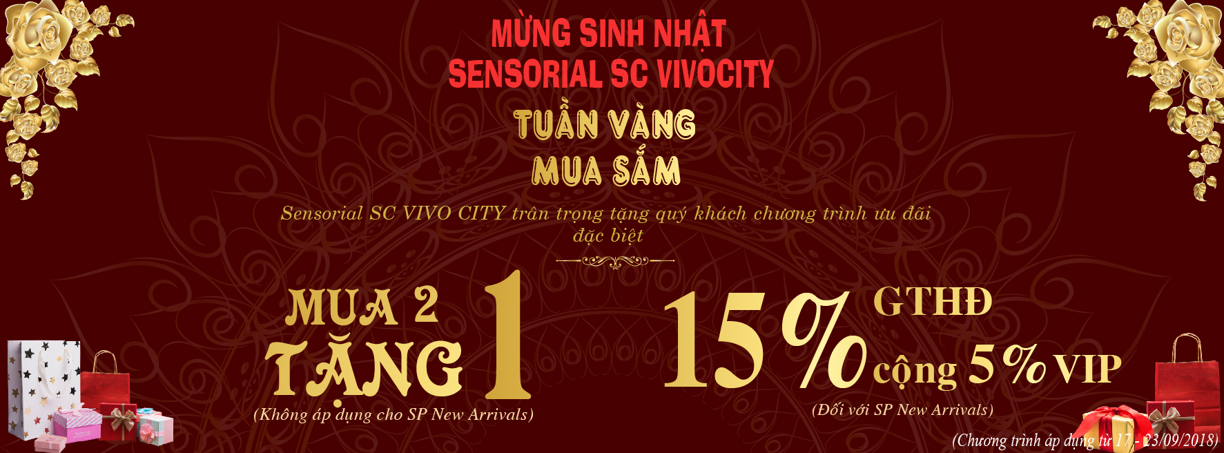 Để hưởng ứng không khí tưng bừng mừng sinh nhật Sensorial SC VIVOCITY lần thứ 3, Sensorial SC VIVOCITY trân trọng gửi tặng quý khách chương trình ưu đãi đặc biệt “TUẦN VÀNG MUA SẮM”!!!💓💓💓