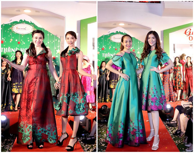 Đặc biệt, BST "Gấm & Hoa" đã tạo ấn tượng cho đông đảo khách hàng tham dự sự kiện. Đây là các thiết kế đôi có cùng màu sắc, cùng họa tiết trên nền gấm cao cấp nhưng được tạo nên trên cả 2 form dáng Missy và Woman