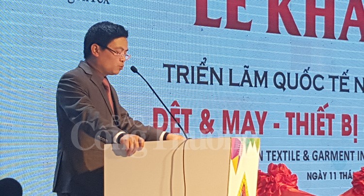 Ông Trương Thanh Hoài, Cục trưởng Cục Công nghiệp (Bộ Công Thương) phát biểu tại lễ khai mạc Saigontex 2018