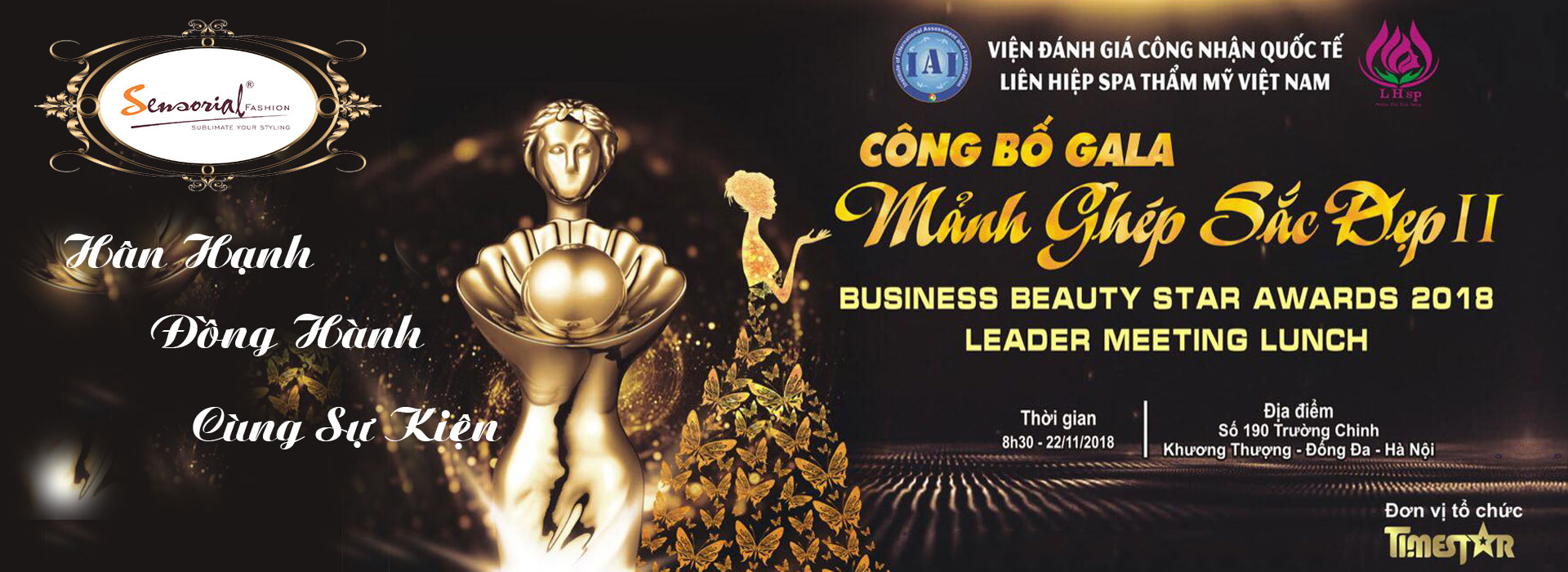 Thương hiệu thời trang Sensorial hân hạnh đồng hành cùng chương trình Gala Mảnh ghép sắc đẹp II của Liên hiệp Spa - Thẩm mỹ Việt Nam và lễ vinh danh Business Beauty Star Awards 2018 sẽ diễn ra vào ngày 19 tháng 12 năm 2018 tại Trung Tâm Trống Đồng Place – 173B Trường Chinh, Khương Mai, Thanh Xuân, Hà Nội.