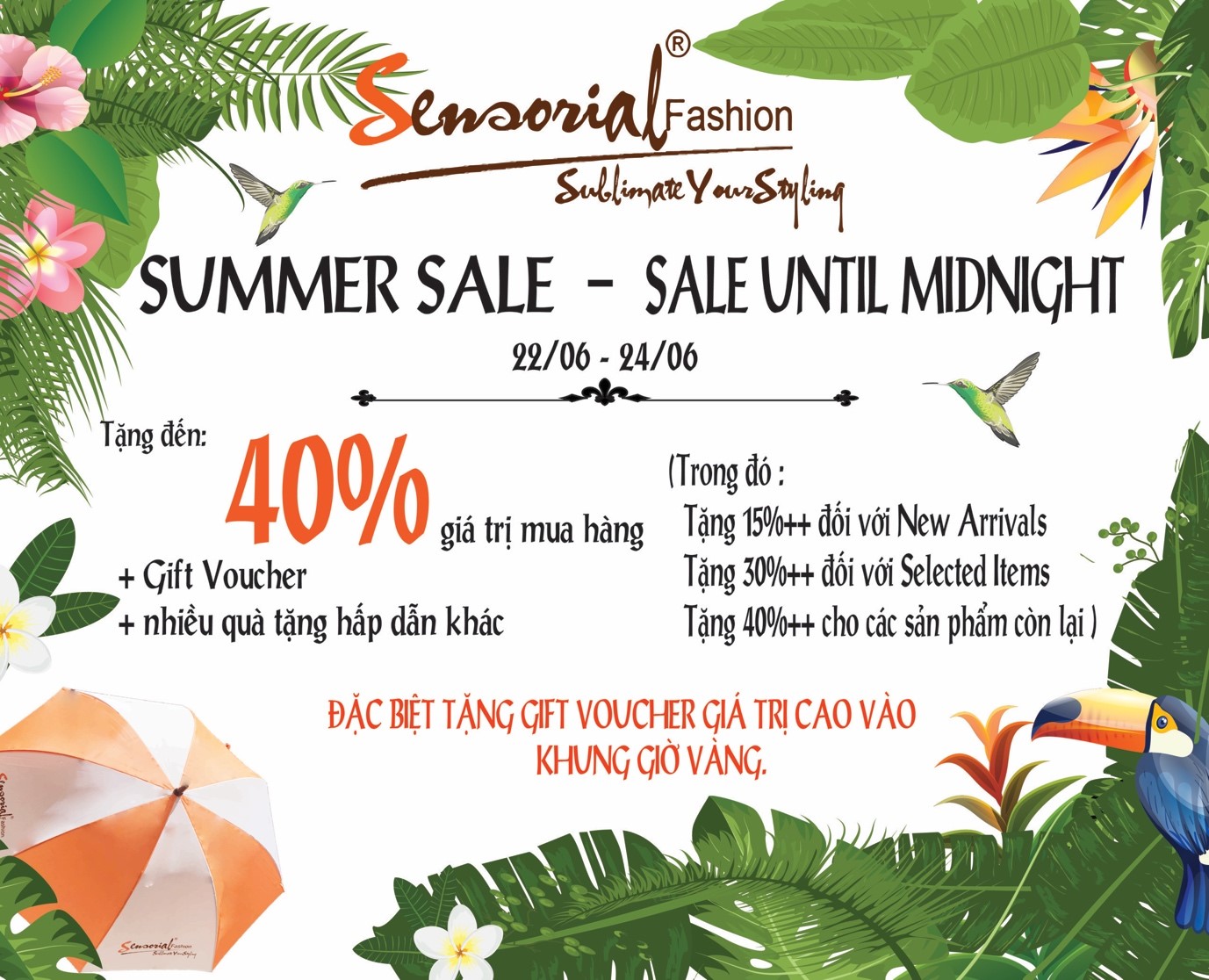 Từ ngày 22/06/2018 đến ngày 24/06/2018, Sensorial áp dụng chương trình Summer Sale. Theo đó: