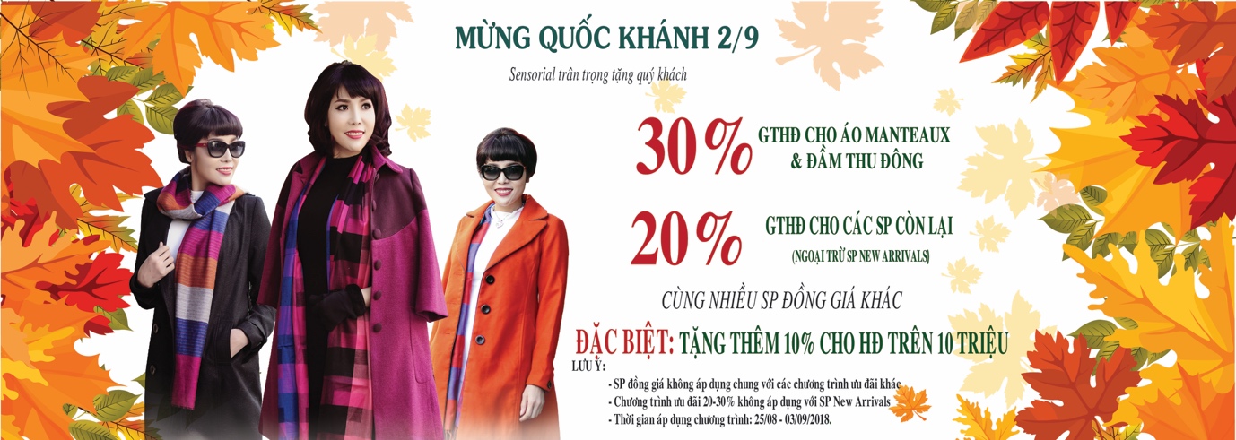 Hòa chung không khí tưng bừng mừng Quốc khánh 2-9, Sensorial trân trọng gửi đến các tín đồ thời trang chương trình ưu đãi hấp dẫn chào đón mùa Thu Đông 2018 với những thiết kế ngọt ngào nhưng vẫn vô cùng sành điệu và thời thượng.