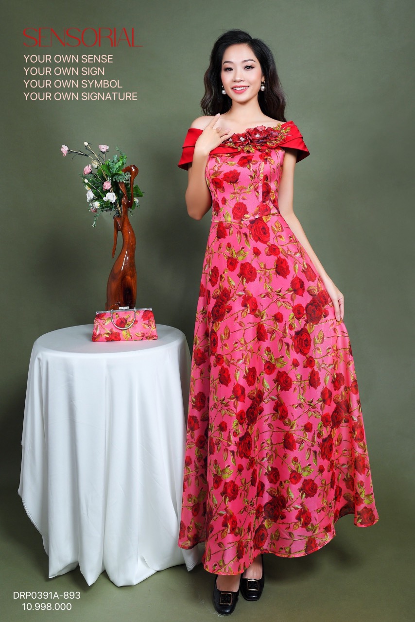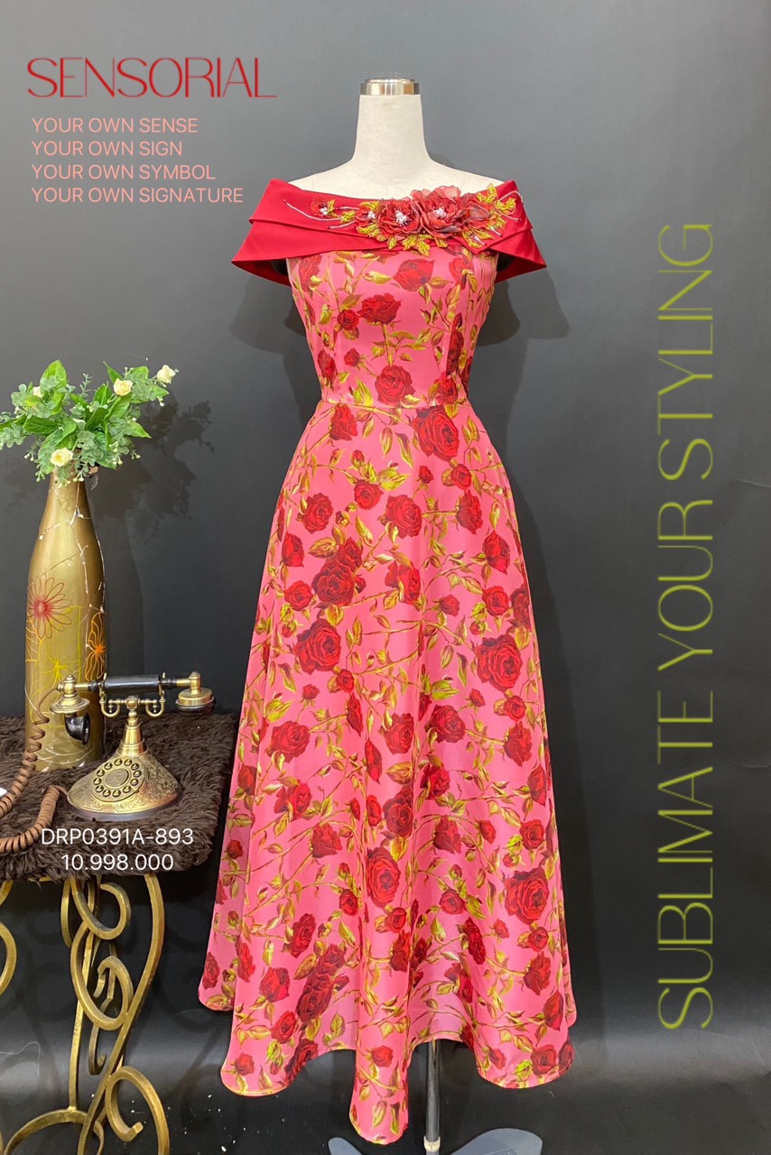 ĐẦM DẠ HỘI DRP0407NH-0365 NHUNG HOA
