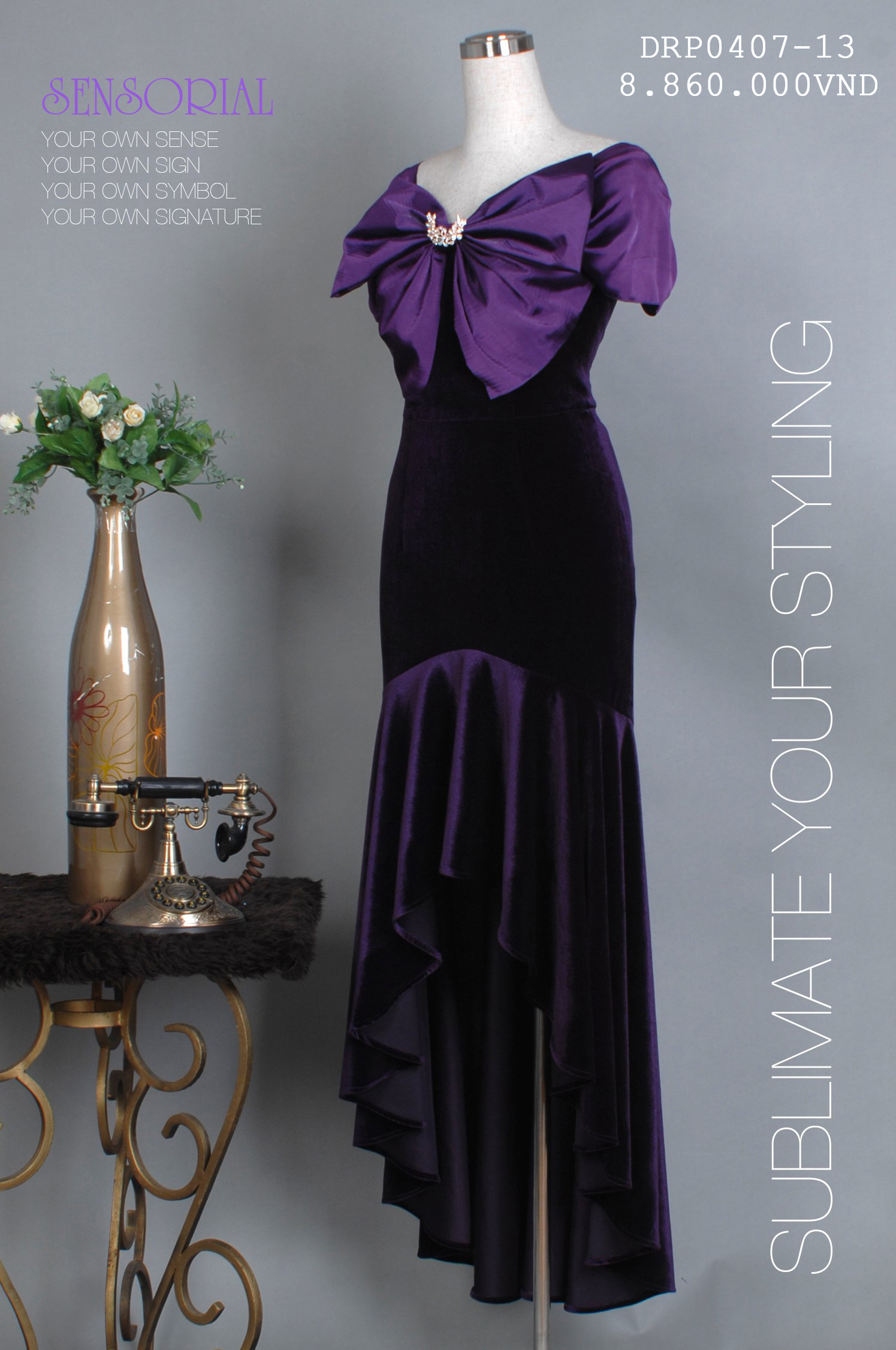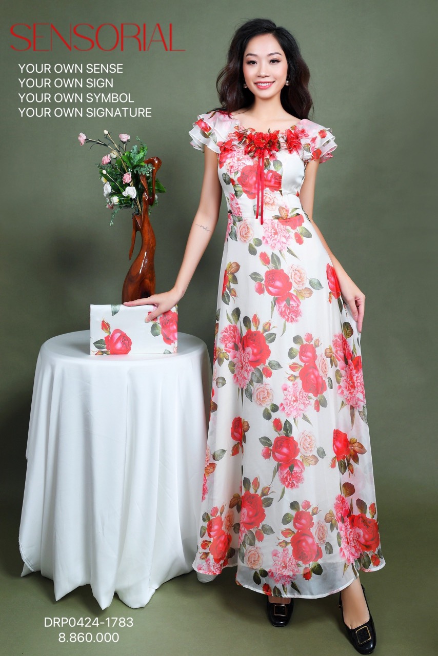 ĐẦM DẠ HỘI DRP0416-135 NHUNG HOA